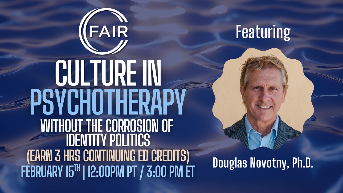 On February 15th, FAIR is proud to present a three-hour continuing education webinar that offers a way forward: Culture in Psychotherapy Without the Corrosion of Identity Politics – A Bipartisan, Pro-Human Model.