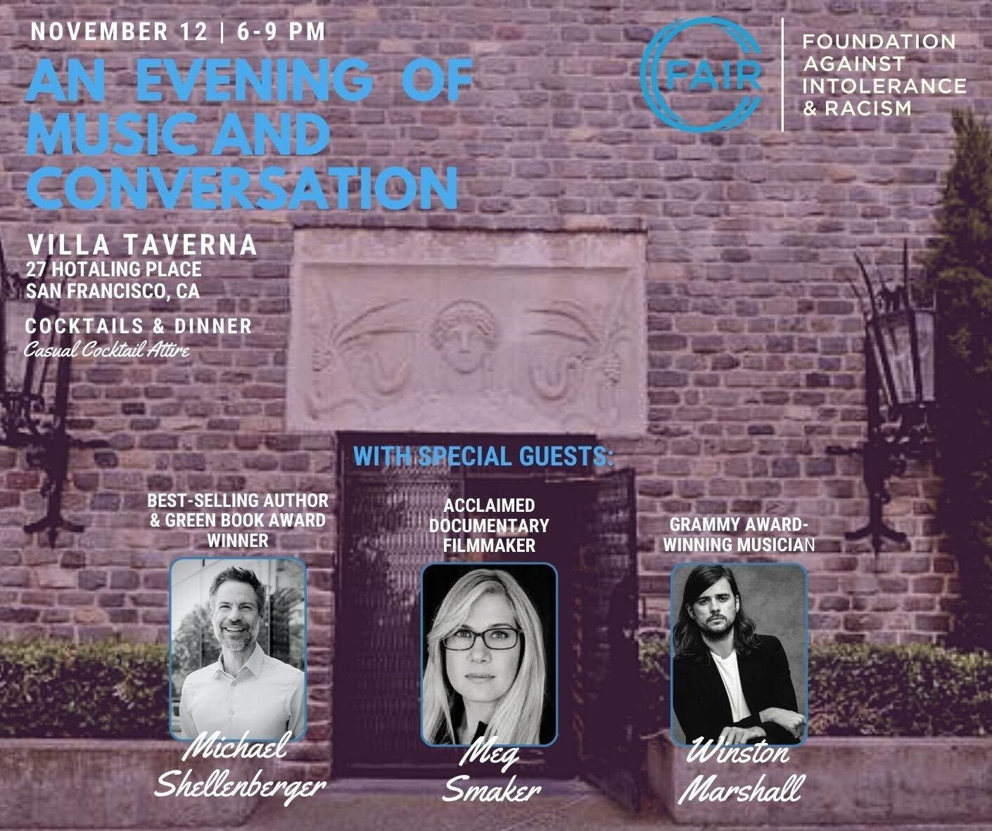 Join us on Saturday, November 12th at 6:00 p.m. PT at Villa Taverna in San Francisco, California for a special evening of music, conversation, and celebration.