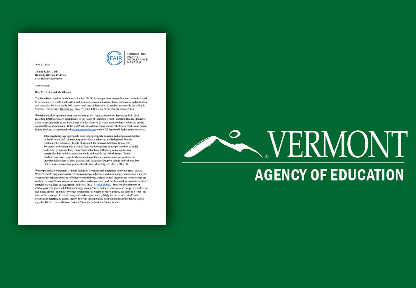 FAIR Sends Letter to Vermont State Board of Education Over “Critical” Ethnic Studies