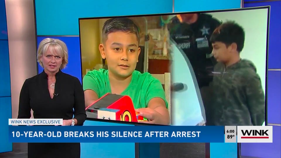 On May 28th, 10-year-old Daniel Marquez was arrested at his Florida home by the Lee County Sheriff’s Office, led by Carmine Marceno. Daniel was subsequently booked, handcuffed, perp-walked, and incarcerated for 21 days before charges were filed.