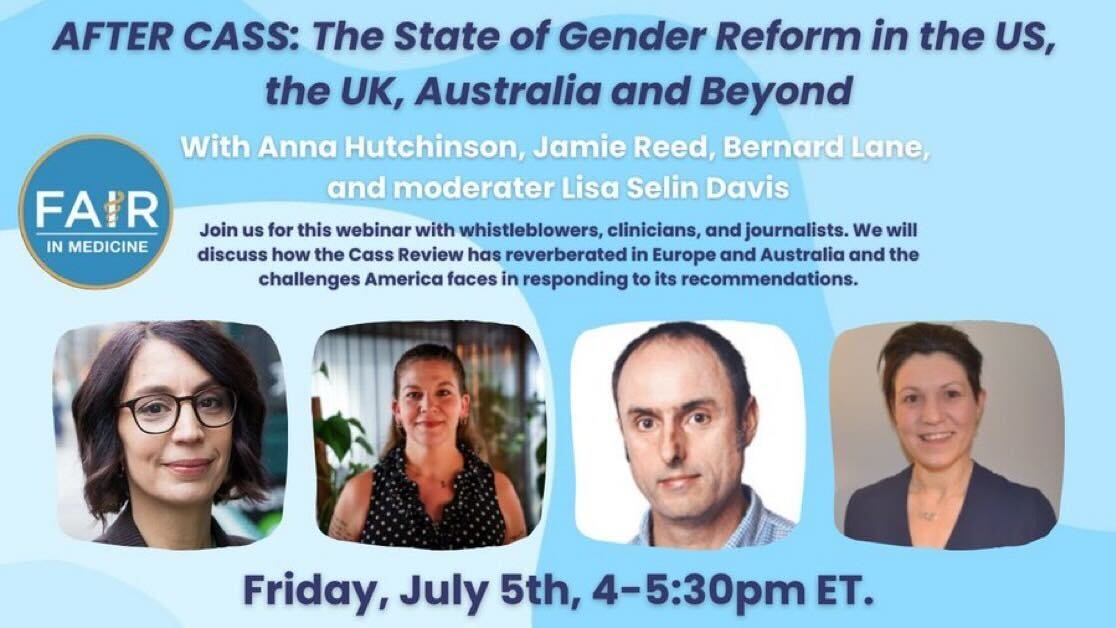 Join us tomorrow, Friday July 5th from 4-5:30pm ET for a virtual event with whistleblowers, clinicians, and journalists. We will discuss how the Cass Review has reverberated in Europe and Australia and the challenges America faces in responding to its recommendations. Moderated by FAIR Advisor and author Lisa Selin Davis.