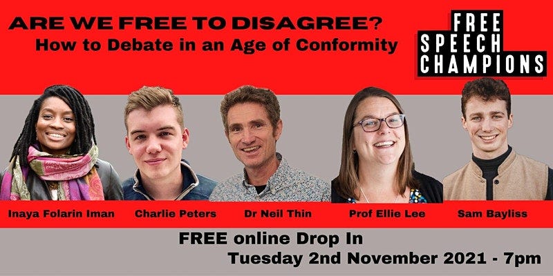 On Tuesday, November 2nd, at 7:00pm, FAIR Advisor Inaya Folarin Iman will be hosting an online event titled “Are We Free to Disagree? How to Debate in an Age of Conformity,” addressing the question: to what extent is free speech a problem on campus, and, to the extent that it is, what can we do to protect it?