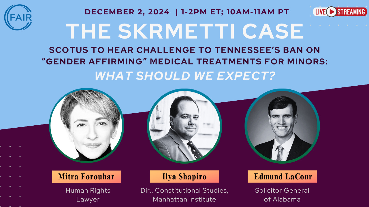 Join FAIR on December 2nd from 1-2pm ET for an informative and engaging discussion about one of the most hot-button legal questions enveloping the country today: is it constitutional for states to ban “gender-affirming” medical treatment for minors?