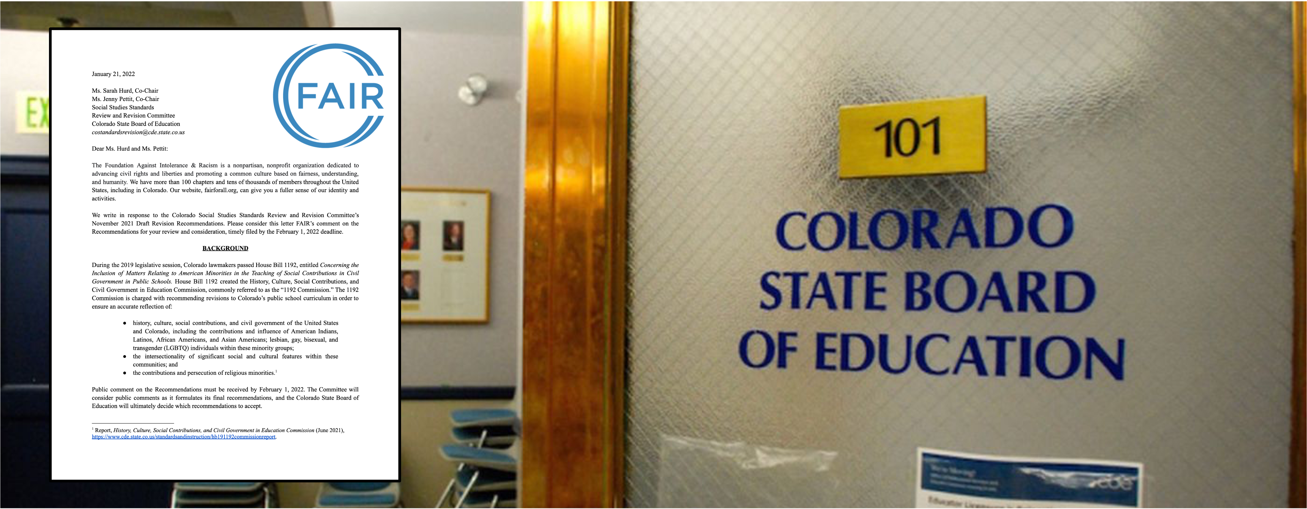 On January 21, 2022, FAIR submitted comments to the Colorado Social Studies Review and Revision Committee on its Draft Revision Recommendations. Among FAIR’s primary concerns with the Draft Revisions was the consistent reference to and grouping together of various groups of people, rather than emphasizing the unique individuality of each of their members. FAIR’s pro-human approach to celebrating our differences and honoring our common humanity informed our comments. Our letter pointed out that: