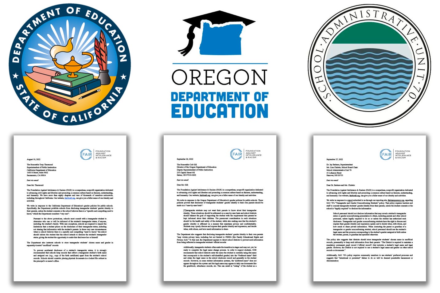 Third, FAIR is standing up for constitutionally-protected individual civil rights and liberties, and has written letters to multiple states and school districts (including California, Oregon, Rhode Island, and SAU 70 in New Hampshire) that adopted policies of hiding students’ gender transition from their parents, storing transgender students’ name and sex in “unofficial” records to keep them beyond the reach of parents and FERPA, and considering a refusal to use others’ preferred pronouns a form of punishable harassment.