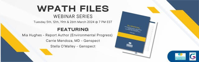 Join Genspect to discuss the WPATH Files Report released on March 4th by Michael Shellenberger’s Environmental Progress. The four part webinar series with Stella O’Malley, Carrie Mendoza, MD, and Mia Hughes, the report’s author, will discuss the key insights from the report and leaked documents, the perspective from the harmed patients, physicians explaining the misuse of medicine, and writers and reporters thoughts.