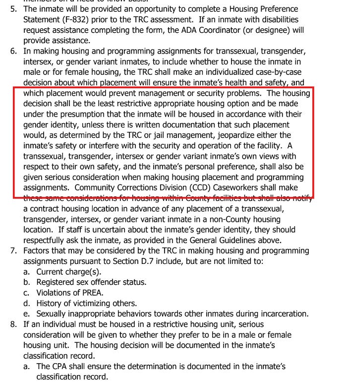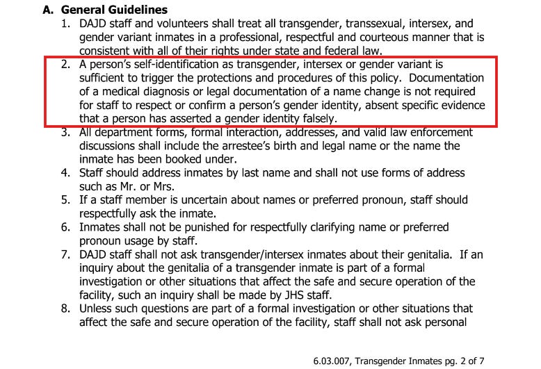 This is not compassion. This is an injustice to further traumatize women by allowing biological males to enter and potentially control their limited prison spaces.